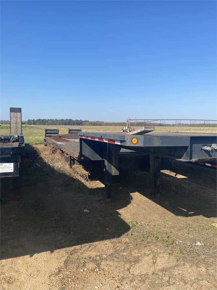 Telescoping sides to haul wide equipment. 8' deck above kingpin. 31' flat deck. 4' dovetail.
