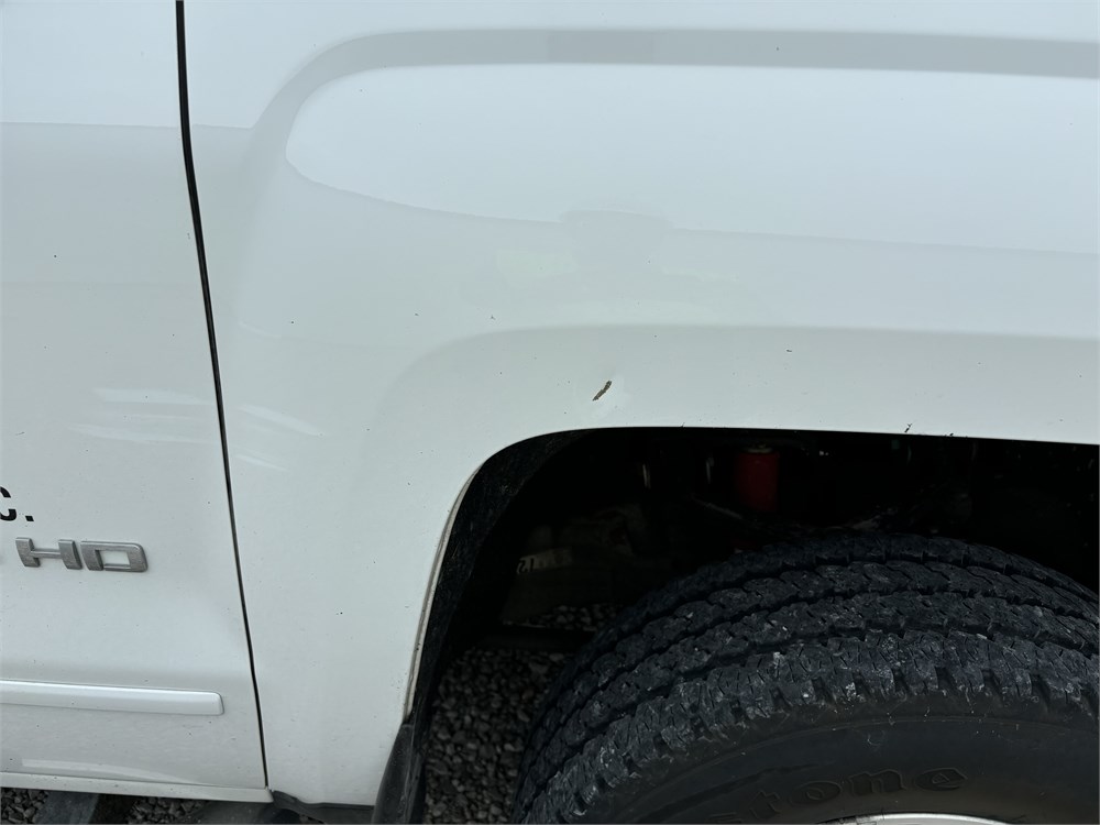 Equipment: 6.0L V8 Gas Engine, Automatic Transmission, 4:10 rear end, 9,500 lb. GVWR, Summit White Exterior with Dark Ash Cloth Interior, LT Fleet Plus and All Star Edition Packages, 17 Inch Wheels, Spray in Bed Liner, Remote Start, Passenger front fender damage (see pics), Company decals will be removed prior to buyer pick up