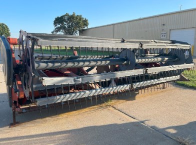- 15' platform head has been modified to fit an early model OXBO and now operates on hydraulics instead of the original mechanical drive