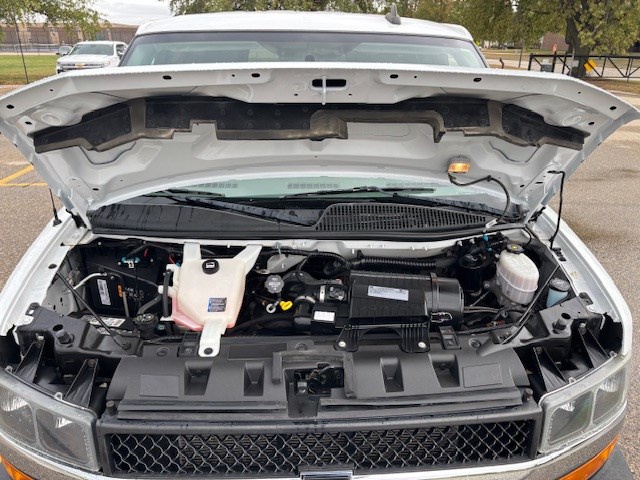 Equipment: 6.0L Vortec V8 Gas, Automatic Transmission, 3.42 Locking Rear Differential, Summit White Exterior with Medium Pewter Interior, Remote Start, 15-Passenger Seating, Original Tires, Hail Damage on Roof