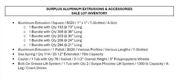 - Aluminum Extrusion / 1 Pallet / 8020 / Various Profiles / Various Lengths / T-Slotted