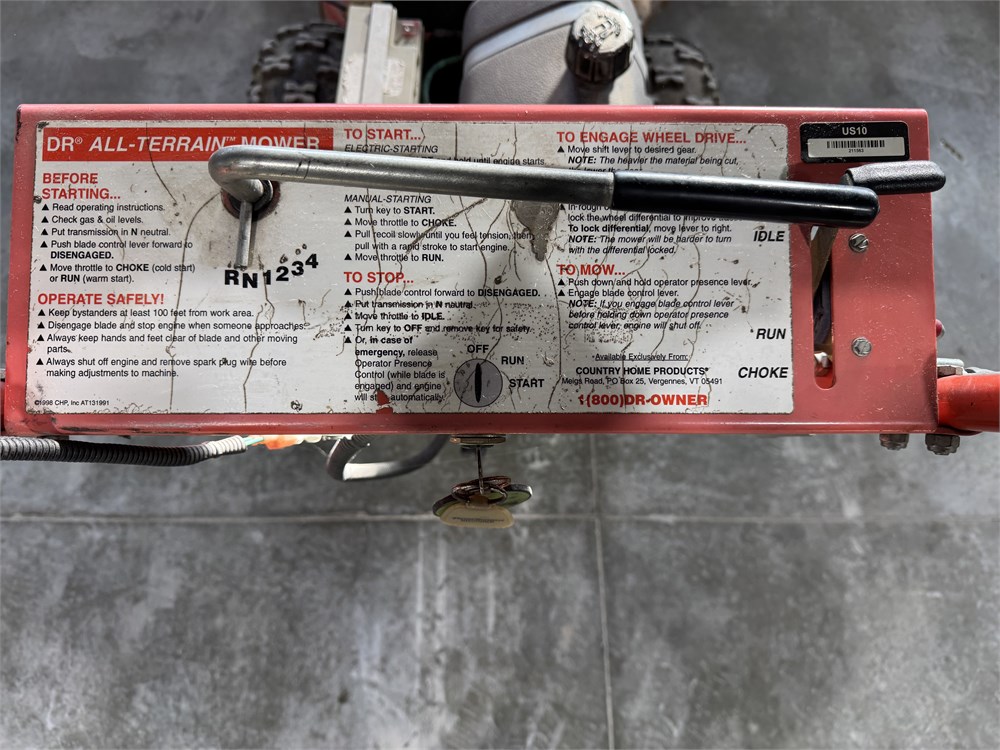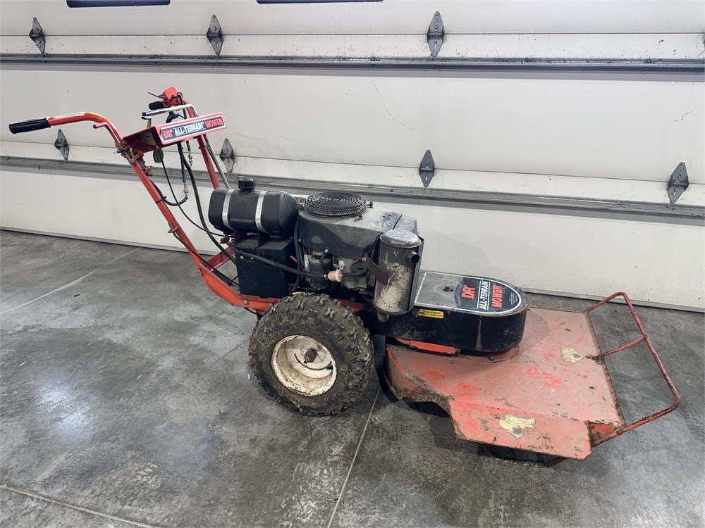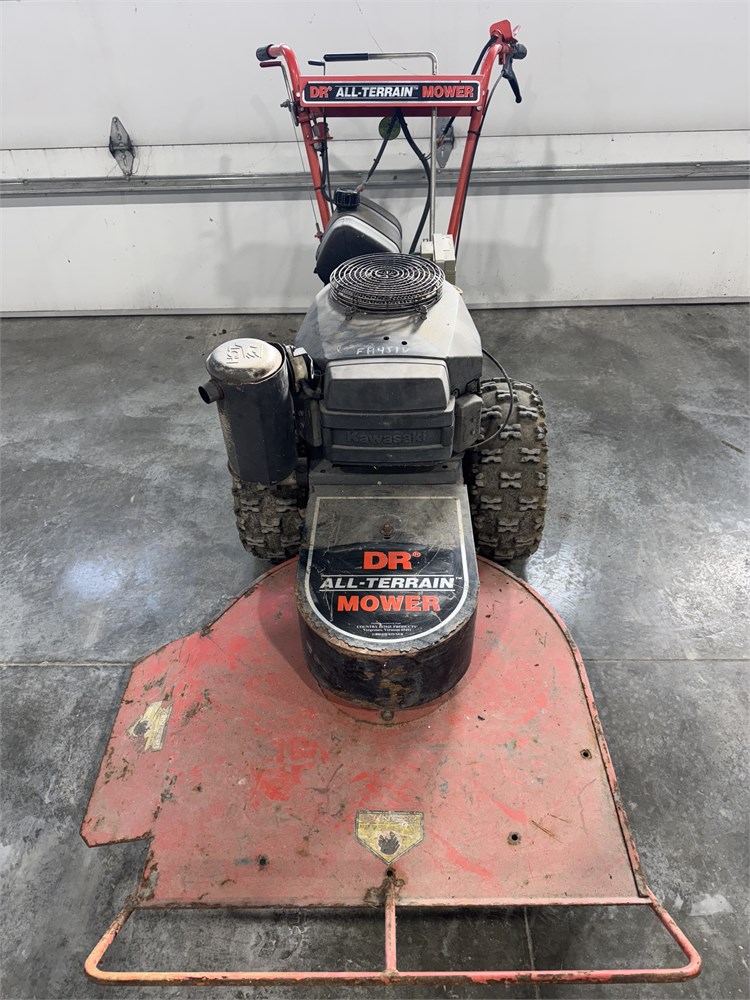 - DR All-Terrain Mower. 26-inch heavy duty blade, side discharge, pivoting deck, 4 speed + reverse, differential lock for more traction, electric start, Kawasaki FH451V V twin engine.