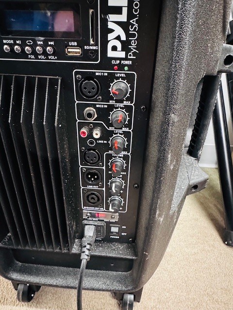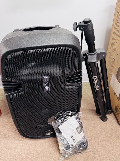 - BT speaker with stand, multiple inputs and radio.