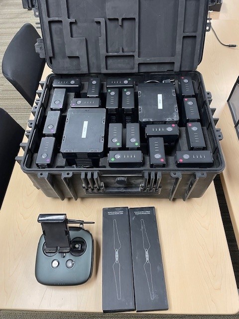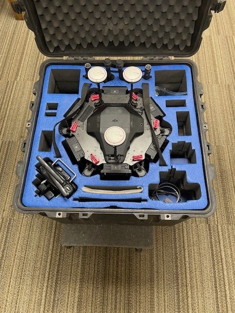 - DJI M600 drone/remote with battery case and 2 charging units. 2 spare props