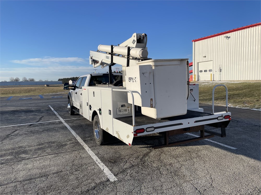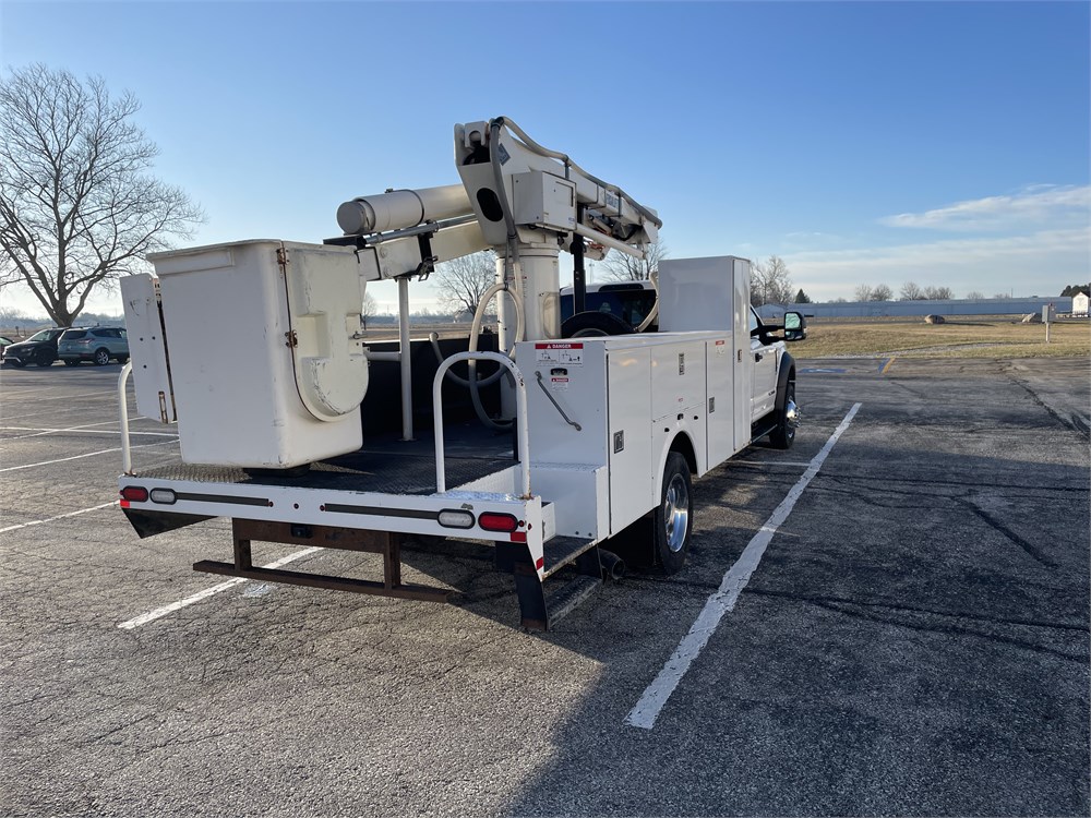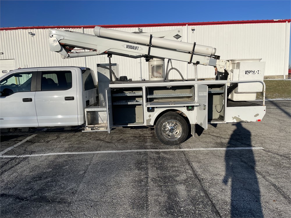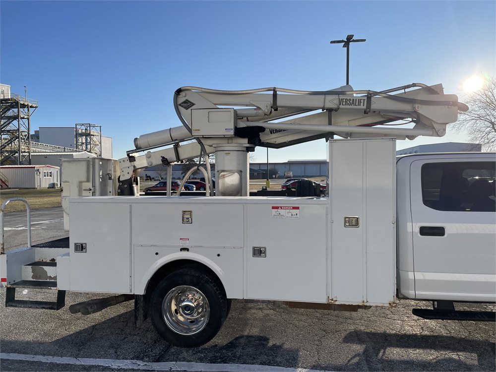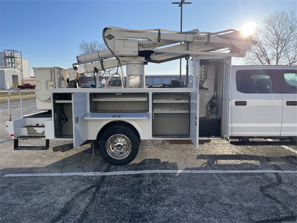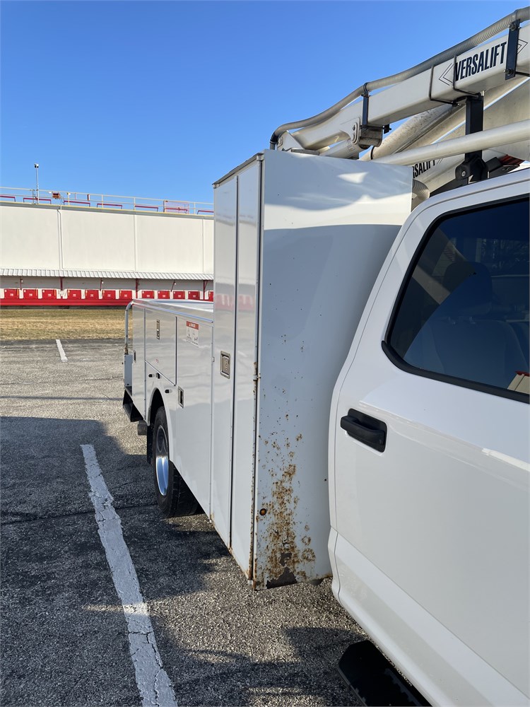 Equipment: 6.7L Power Stroke Diesel, Automatic Transmission, 4.88 limited slip rear end, 19,500 lb. GVWR, Oxford White Exterior with Medium Earth Gray Cloth Interior, Versalift SST-40 Aerial Lift w/ 45 ft. working height, vacuum seed sampling system, paint peeling off service body