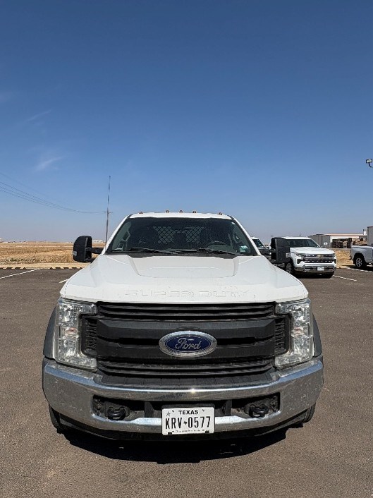 Equipment: 6.7L V8 Diesel, 6-Speed Automatic Transmission, 4.88 Limited Slip Rear Axle, Oxford White Exterior with Medium Earth Grey Cloth Interior, XL Value Package, Dual Fuel Tanks, Remote Start, Back Up Camera, 9 ft. Flatbed with Gooseneck and Receiver Hitches, 19,500 lb. GVWR, Dents in Cab - See Pictures, Company Decals Will Be Removed Prior to Buyer Pickup