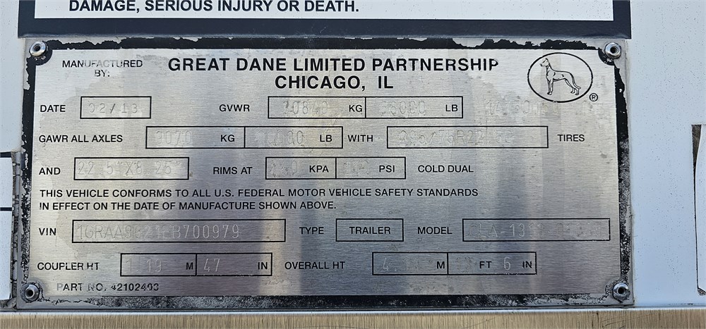 Make/Model: Great Dane CLA-1313-01048