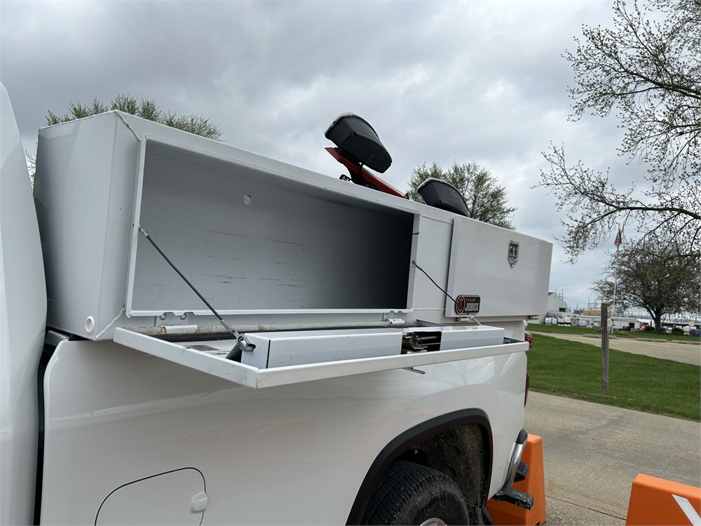 Equipment: 6.6L Gas Engine, Automatic Transmission, 3.73 rear end, 10K lb. GVWR, Summit White Exterior with Jet Black Cloth Interior, Safety and Z71 Off-Road Packages, Remote Start, Heated Seats and Steering Wheel,18 Inch Wheels, Spray in Bed Liner, JOBOX Delta Pro Toolboxes (1 has broken/missing handle), Western 7'6" Straight Blade Snowplow - Series 2, Company decals will be removed prior to buyer pick up