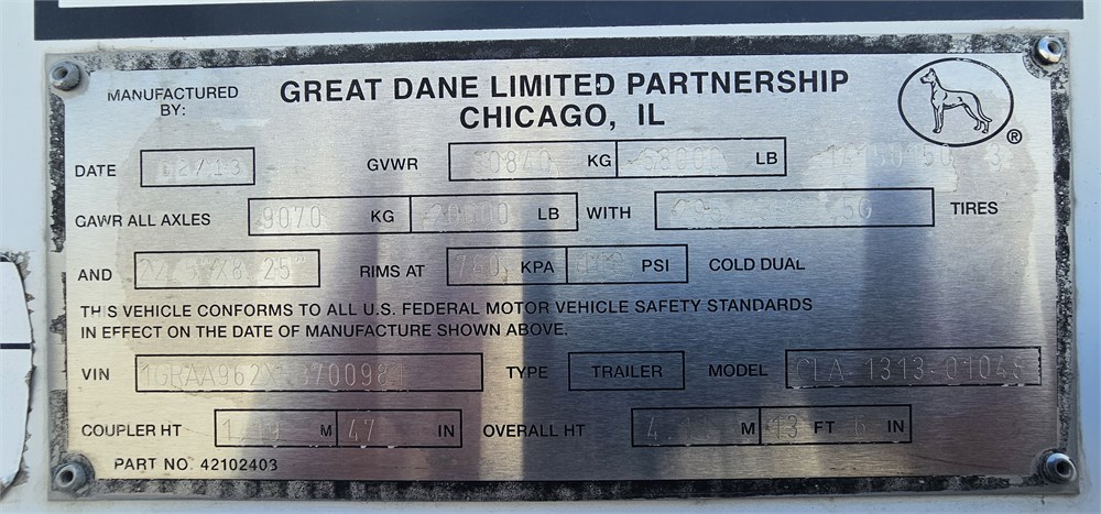 Make/Model: Great Dane CLA-1313-01048