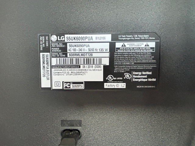 Make/Model: LG 55UK6090PUA